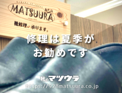 十勝・帯広市の靴屋、マツウラです、こんにちは。靴の修理さんが年々減ってきており、おかげさまで修理のご依頼を多数頂いております。靴の販売、修理共に靴屋は冬に忙しくなります。昼は店舗で販売、修理は店舗が終わってからの作業になるので、修理日数は多めに頂くことになります。