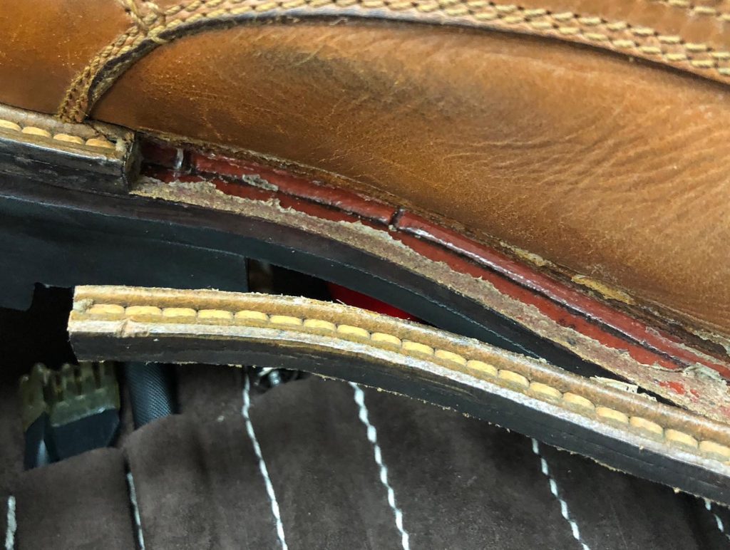 なかなか余裕がなく久々の投稿になります#ウェルト修理 #革補修 です。 #十勝#帯広#靴のマツウラ#靴修理#靴修理ビフォーアフター#シューリペア#シューズカスタム#カバン修理#レザークラフト#底張り#革補修#革の塗り替え#染め